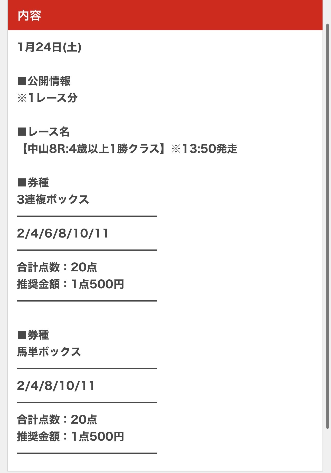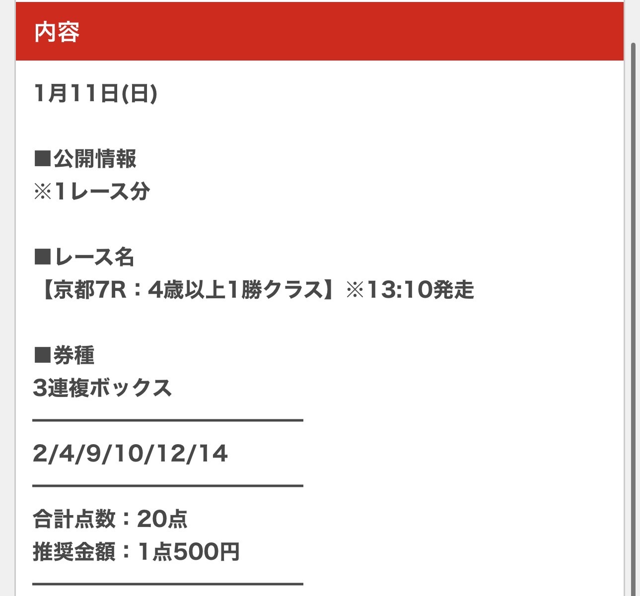 1/11(日)午後イチの無料予想で三連複的中