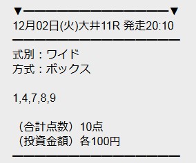 1日(月)大井10Rの無料予想でワイド3種完全的中!