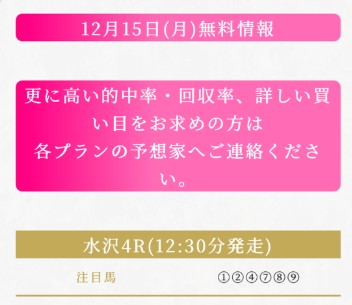 女性予想師集団の無料予想は12月も健在です!
