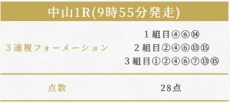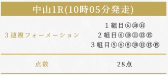 13日(土)中山のあさイチで三連複的中