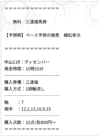中山11Rの無料予想を三連複で提供してくれていたEFセレクト