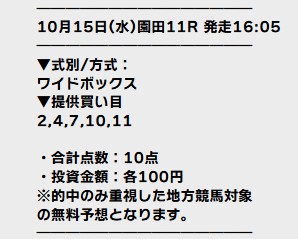 無料予想買い目点数10点で2万5400円獲得!