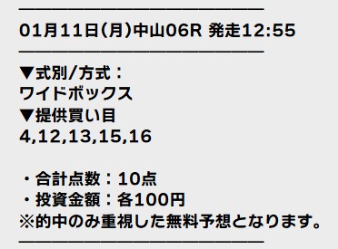 1月11日(日)は中央競馬の無料予想で3鞍提供3鞍的中
