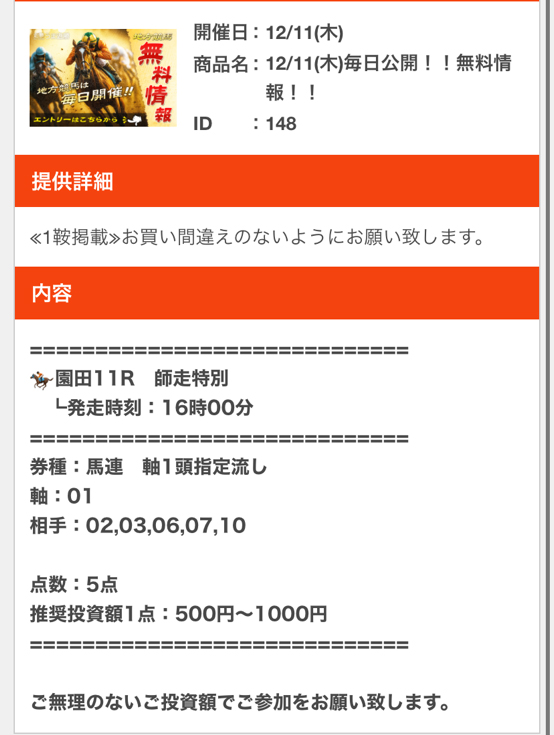 11月最終日の無料予想で